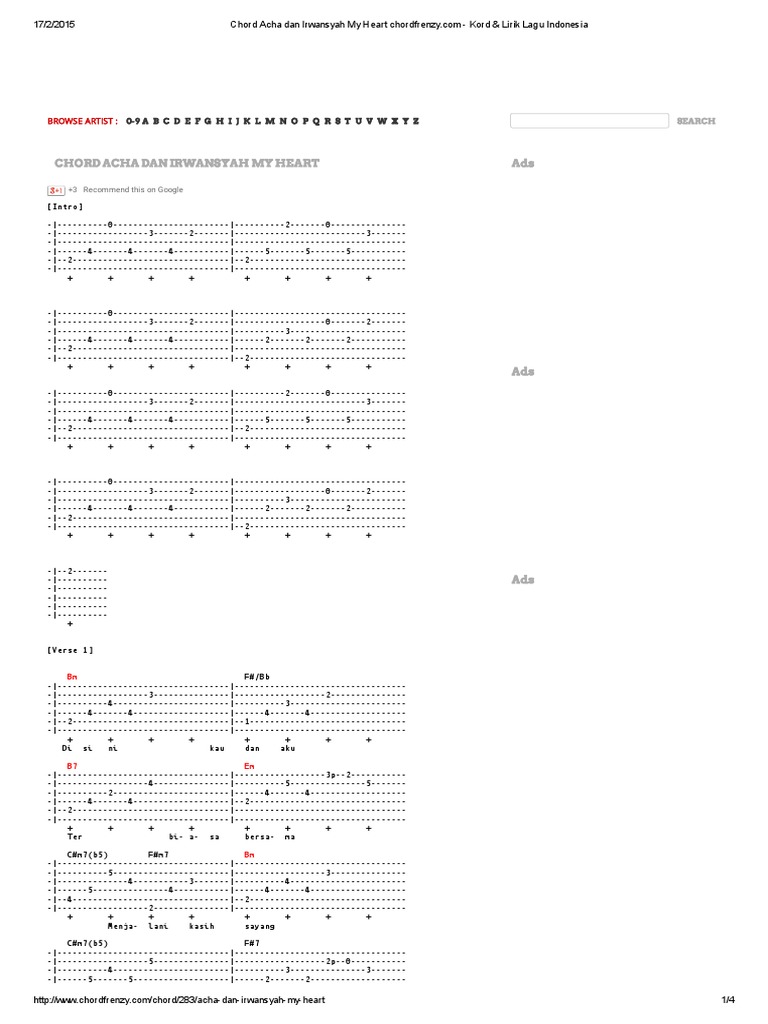 Author Jammerz910 a 51. IRWANSYAH FT ACHA SEPTRIASA MY HEART HEART Intro Bm Bm Bm Fm VERSE Male Bm F Di sini kau dan aku Bm7 Em Terbiasa bersama F Bm Menjalani kasih sayang Cdim F Bahagia ku denganmu VERSE. Capo in 3rd fret Intro.